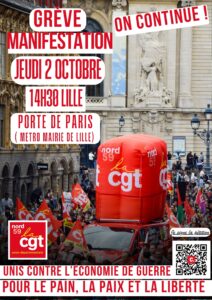 Sep252025ActualitéCommuniqués 2 octobre TRACT GREVE 02 OCT SEPTEMBRE 2025 Catégories : Actualité, Communiqués25 septembre 2025 Partager cet article Partager sur FacebookPartager sur Facebook Partager sur TwitterPartager sur Twitter Partager sur LinkedInPartager sur LinkedIn Partager sur WhatsAppPartager sur WhatsApp Ces informations vous intéressent également !18 Septembre – Journée de Grèves et Manifestation12 septembre 2025A PARTIR DU 10 SEPTEMBRE IMPOSER UNE AUTRE REPARTITION DES RICHESSES12 août 2025urgent rassemblements Gaza meurt de faim22 juillet 2025Communiqué Commun pour la PAIX7 juillet 202520 juin Meeting des convergences de luttes Arcelormittal 12h302 juin 20255 juin 2025 Journée de grève et de manifestation23 mai 2025