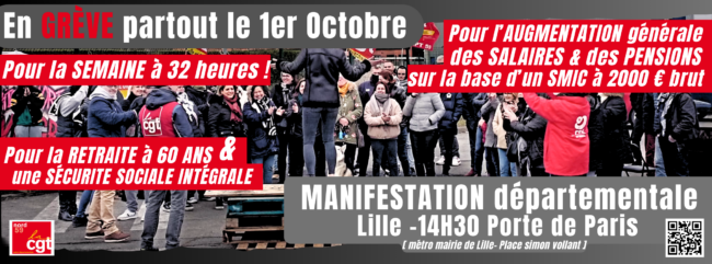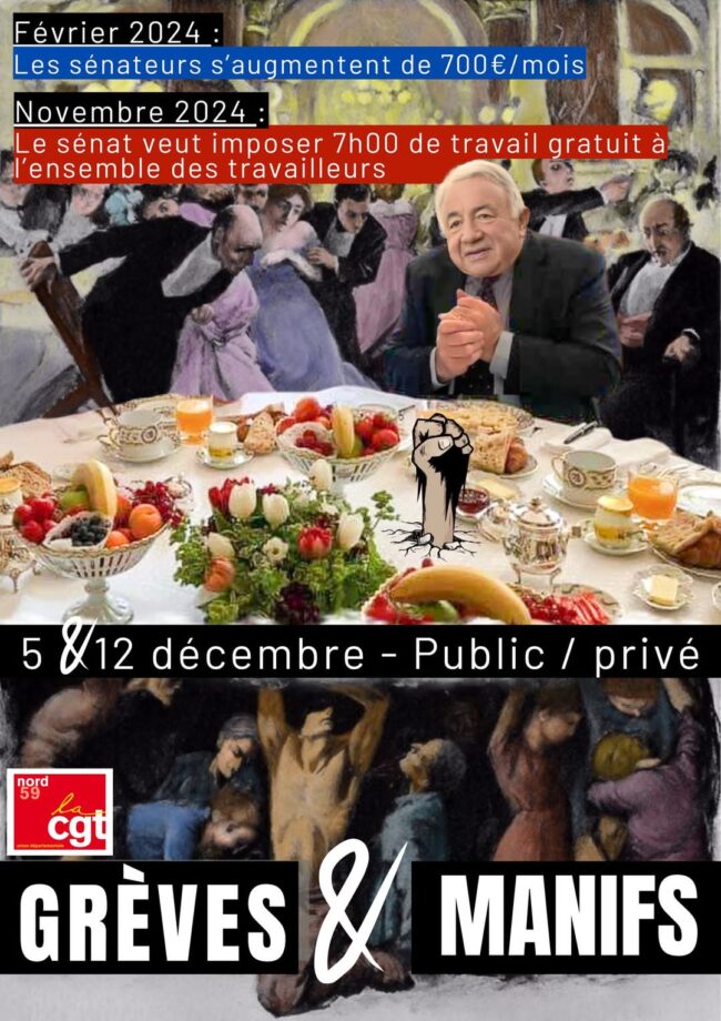 5 DECEMBRE 2024- APPEL A LA GREVE DANS LA FONCTION PUBLIQUE MANIFESTATION DEPARTEMENTALE 14H30 PORTE DE PARIS A LILLE Le ministre de la fonction publique, Guillaume Kasbarian, doit renoncer: – aux trois jours de carence dans la fonction publique – à la diminution de l’indemnisation des jours d’arrêt maladie – au non-versement de la garantie…