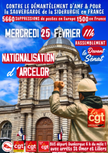 Fév52026ActualitéCommuniqués COMMUNIQUE ARCELOR JANVIER 2026 Catégories : Actualité, Communiqués5 février 2026 Partager cet article Partager sur FacebookPartager sur Facebook Partager sur TwitterPartager sur Twitter Partager sur LinkedInPartager sur LinkedIn Partager sur WhatsAppPartager sur WhatsApp Ces informations vous intéressent également !Stoppons la marche à la guerre mondiale impérialiste2 février 2026Construison un Front Uni contre la Guerre et imposons le pain la paix la liberté par la grève5 janvier 2026Solidarite avec le Peuple Vénézuelien5 janvier 2026appel de la CGT du Nord- Non à ce budget inique !12 décembre 2025Manifestation pour la nationalisation d’Arcelor13 novembre 20252 Décembre Rassemblement cour d’appel de Douai 9 h30 octobre 2025