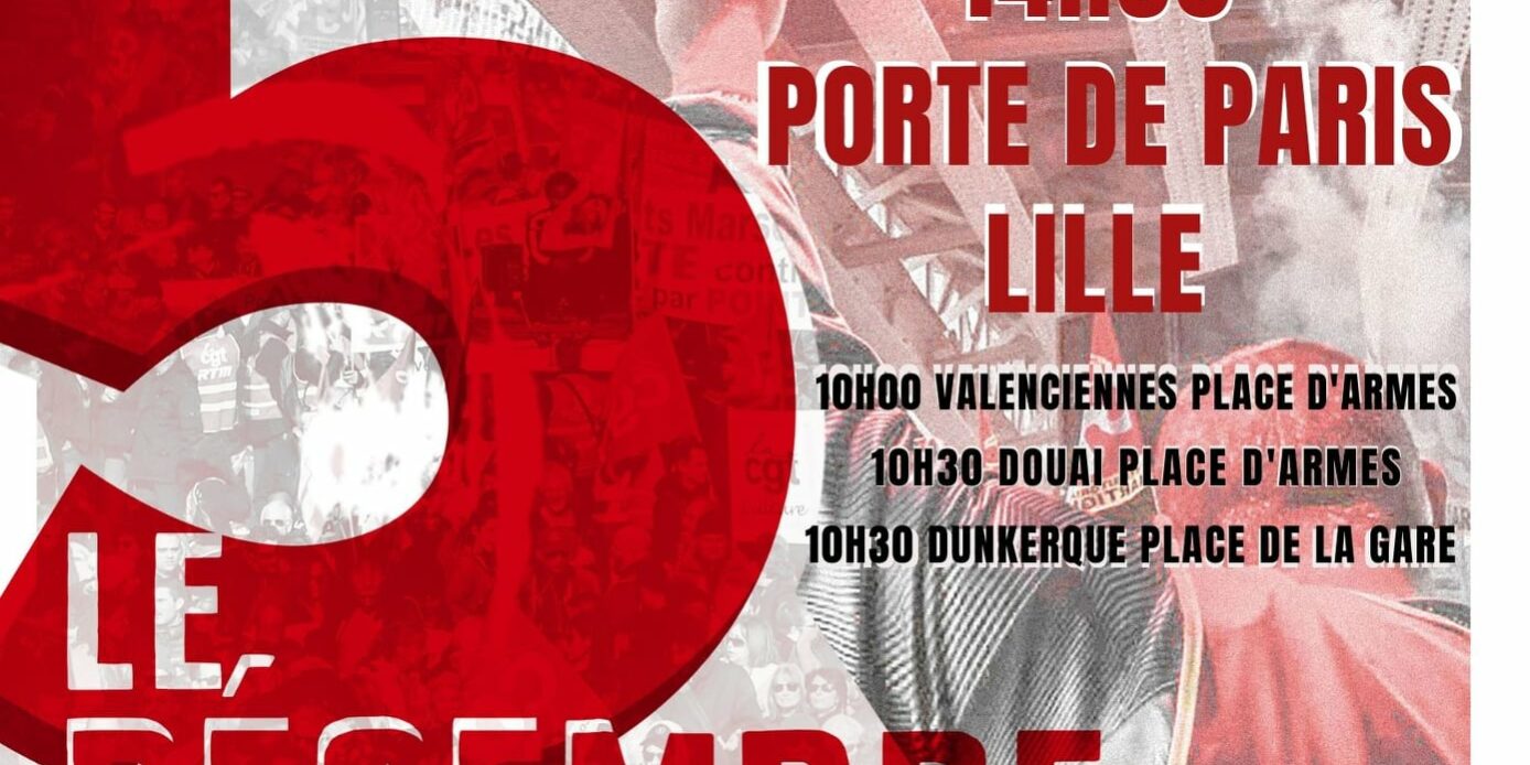 Nov302020Communiquésle 5 décembre tous en lutte ! Catégorie : Communiqués30 novembre 2020 Partager cet article Partager sur FacebookPartager sur Facebook Partager sur TwitterPartager sur Twitter Partager sur LinkedInPartager sur LinkedIn Partager sur WhatsAppPartager sur WhatsApp Ces informations vous intéressent également !Manifestation pour la nationalisation d’Arcelor13 novembre 20252 Décembre Rassemblement cour d’appel de Douai 9 h30 octobre 20256 novembre – actifs et retraités même combat 14h 30 Porte de Paris à Lille30 octobre 2025Meeting pour la nationalisation d’Arcelor 4 Novembre30 octobre 2025La CGT solidaire du peuple Palestinien20 octobre 20252 Octobre Journée de grève et Manifestations25 septembre 2025